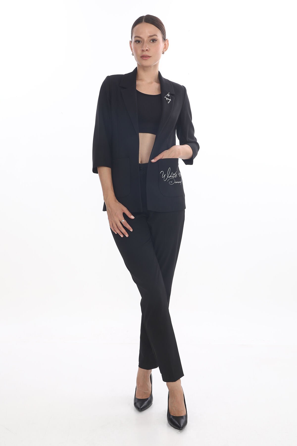 Cep Detaylı Broşlu Ceket